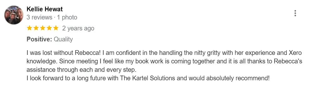 The Kartel Solution offers comprehensive bookkeeping services, including Xero management, accounts payable and receivable, invoicing, payroll, business systems implementation, reporting, BAS and IAS lodgements, and more. Rebecca also provides monthly business development coaching to help you achieve your goals and improve your lifestyle. For proactive, accountable, and efficient support, learn more today!